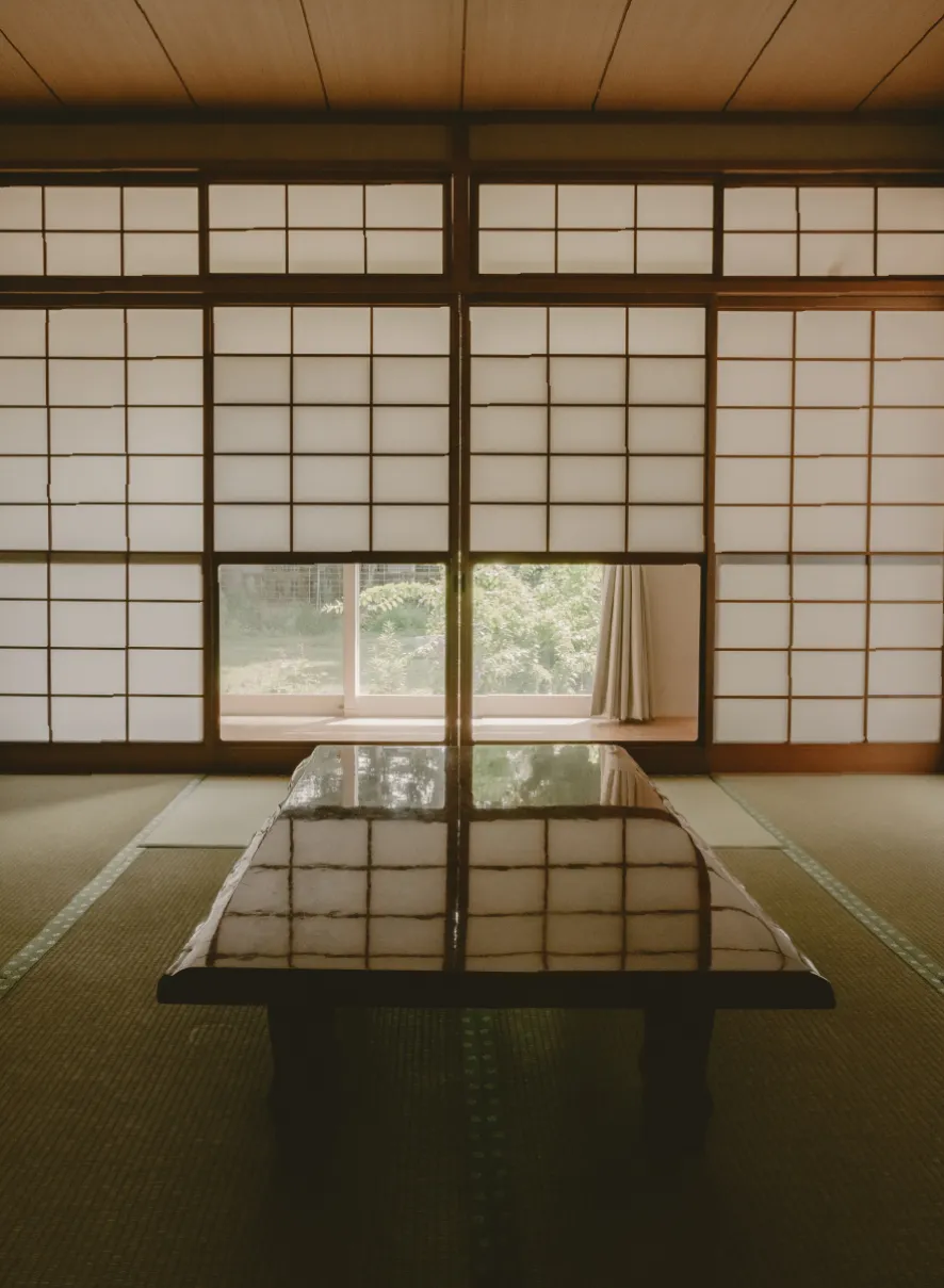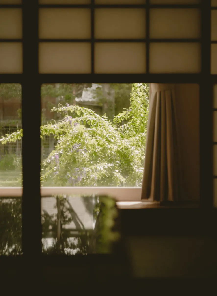 その静かな庭に抱かれるように、古き趣と柔らかな息づかいが調和する三つの客室とリビング。