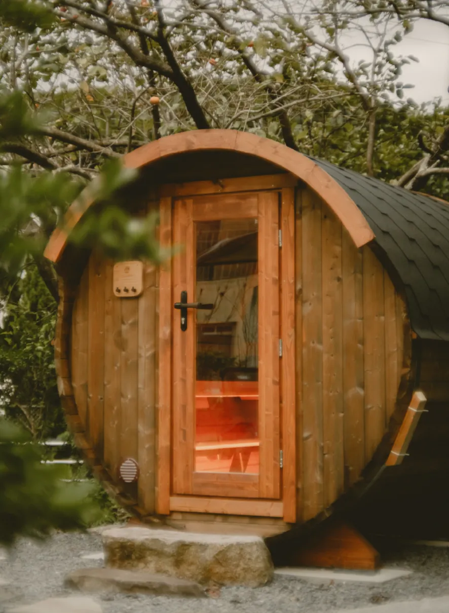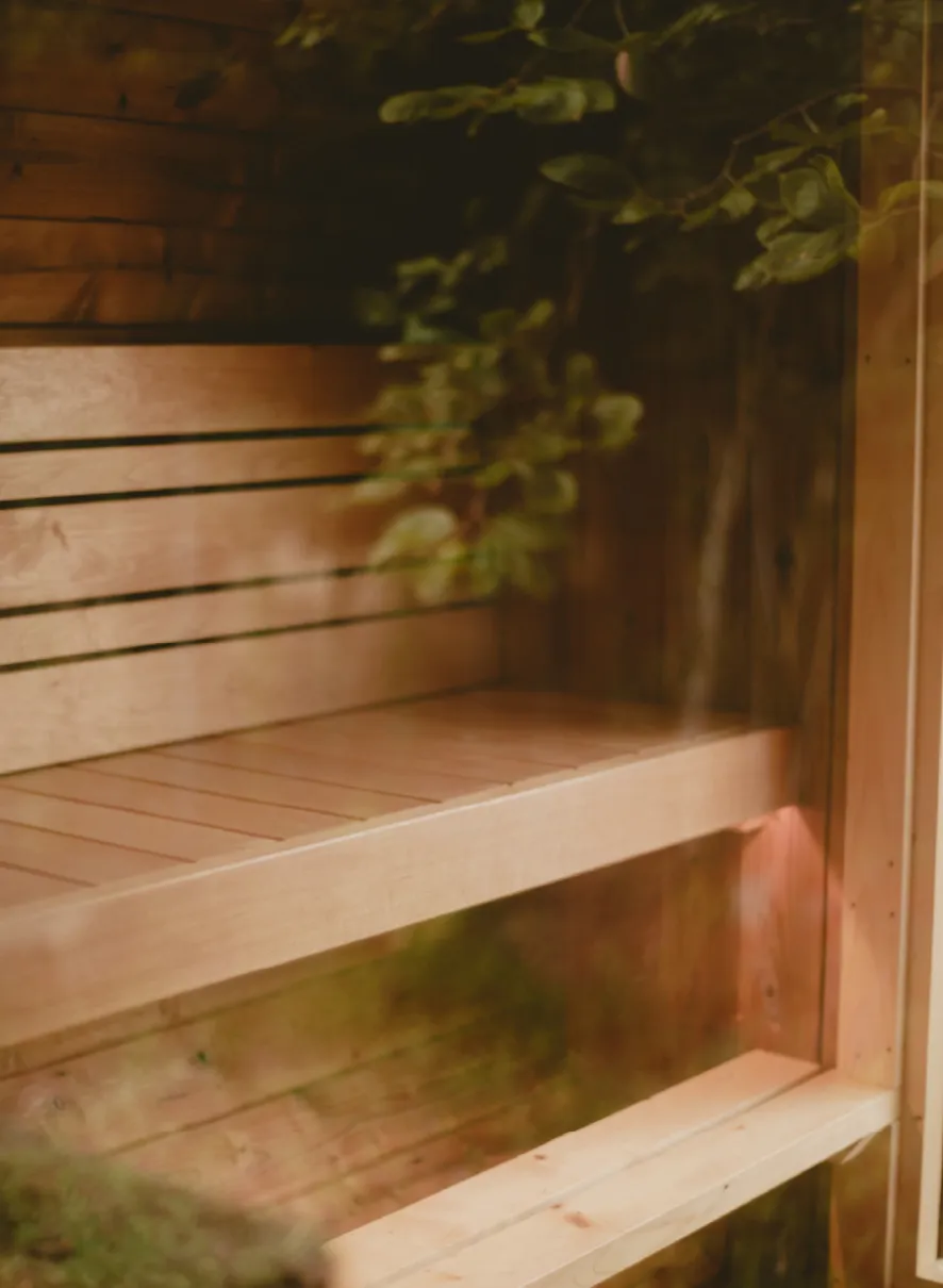 木樽の曲線がやわらかく包み込むようなサウナ。熱気が空気を満たすとき、五島産のレモングラスの茶葉によるロウリュが蒸気に乗って広がり、爽やかな緑の香りが身体と心をそっと溶かします。大きな窓の先には枝葉がひそやかに揺れ、樹々が目の前に佇みます。森の中にひそむ湯屋のようなこの場で、揺れる草木や満天の星空を見ながら呼吸を重ねるほどに、まるで自然の一部になるような深いリラックスが待っています。
